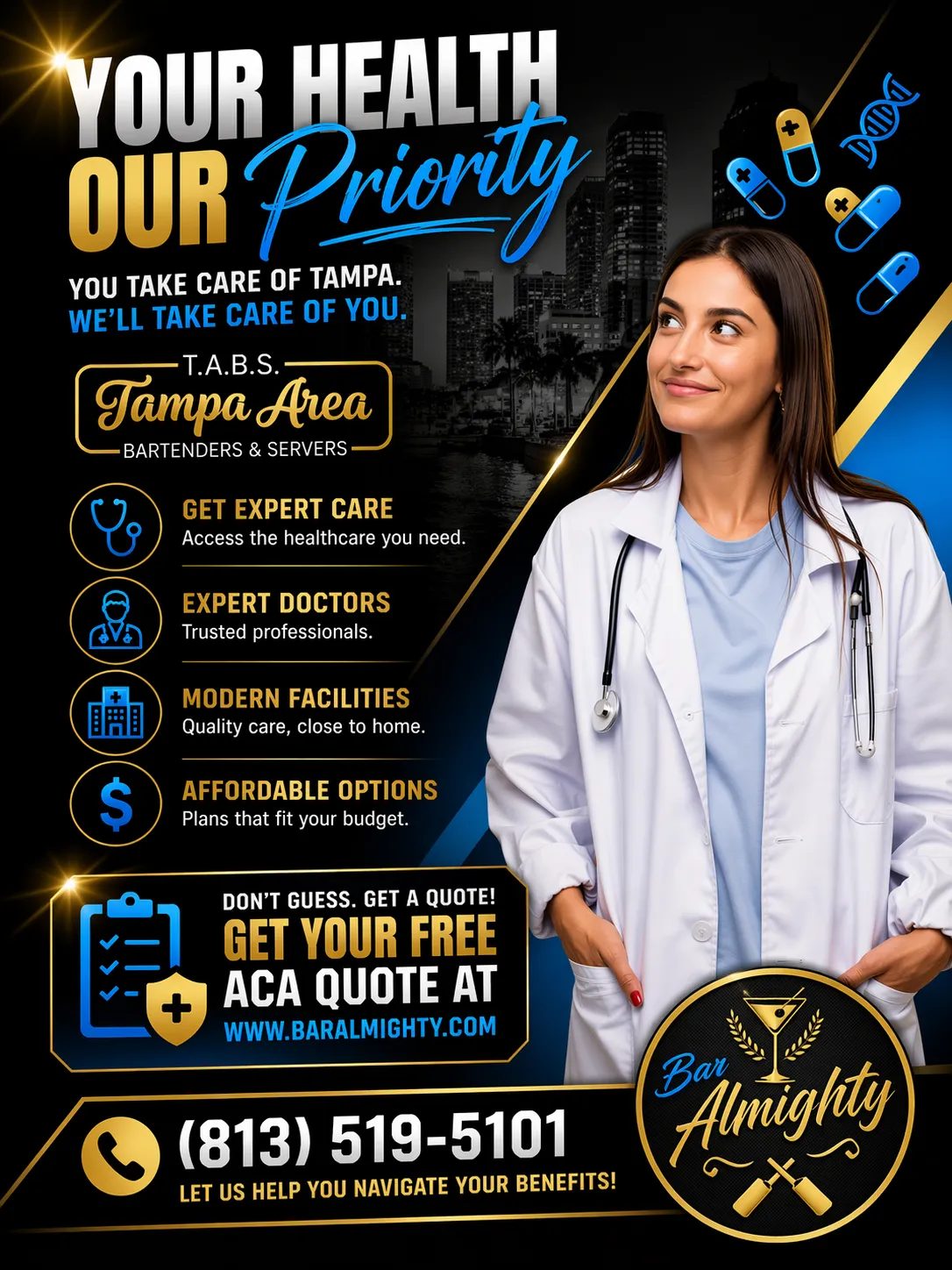 Bar Almighty offers ACA-compliant health insurance and custom life insurance built specifically for hospitality workers.